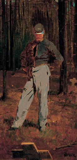 Keywords: Winslow Homer - Trooper meditating beside a grave (ca.1865).jpg Artwork Creator Winslow Homer 1865 oil canvas cm 40 64 20 32 Institution Joslyn Art Museum accession number 1960 298 object history credit line Gift of Dr Harold Gifford and Ann Gifford Forbes exhibition history Homer ~ lower right signature http //www joslyn org/collections-and-exhibitions/permanent-collections/american/winslow-homer-trooper-meditating-beside-a-grave/ The Joslyn Art Museum PD-old-auto-1923 1910 Oil paintings by Winslow Homer Paintings in the Joslyn Art Museum 1860s paintings by Winslow Homer Paintings of the American Civil War |