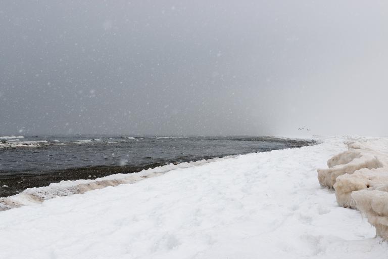 Keywords: latvia jurmala baltic sea balticsea gulf of riga gulfofriga bay seaside beach winter snow snowing ice water gulls seagulls seabirds birds waves shore coast outdoor Jurmala beach in winter Jurmala beach in winter