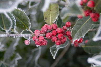 Keywords: winter berry hulst freeze white frozen freezing plant branches cold