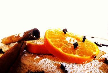 Keywords: winter holidays christmas mandarin cinnamon cloves liqueur vodka alcohol snow anise poland winter items fruit white background