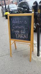 Keywords: winter is coming sign yarn knitting knit warm christmas snow xmas season crafts needlepoint sewing street street sign advertisement ad sidewalk shop store art arts and crafts