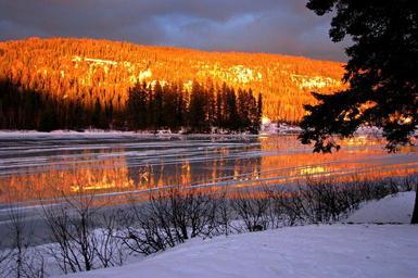 Keywords: winter landscape ice water mountain trees nature branches snow cold québec