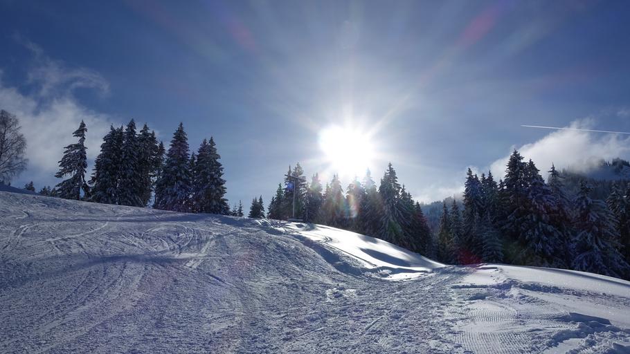 Keywords: winter landscape snow sun back light wintry ski run allgäu snowy snow lane winter sun