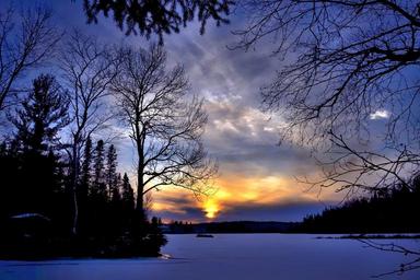 Keywords: winter landscape sunset evening clouds snow sky twilight nature trees cold winter frozen lake sun québec canada