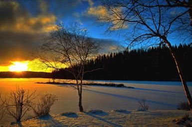 Keywords: winter landscape sunset trees evening snow against day sky contrast québec