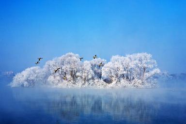 Keywords: winter migratory birds lake sky landscape water by the river scenery lake landscape lake plant snow new in the cold blue artistic