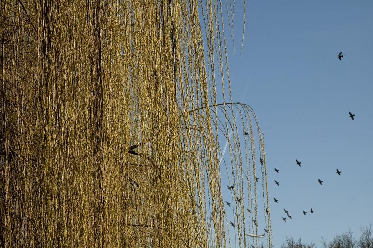 Keywords: winter pasture flock of birds nature sky