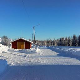 Keywords: winter road sky cold barn day sunshine street decked snow