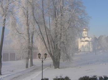 Keywords: winter russia snow morning monastery frost leann in winter trees temple alley nature