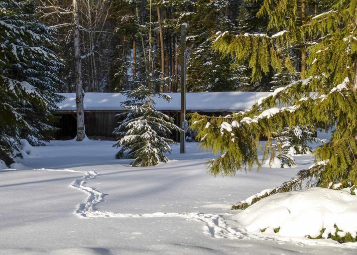 Keywords: winter scenery canim lake british columbia canada snow weather mood sunny day cold landscape trees wintry winter dream snow magic frosty icy outside scenic lake barn building tracks
