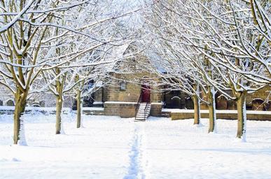 Keywords: winter seasons snow snowy tree trees branch branches without leaves cold white nature church building road alley architecture england north yorkshire landscape
