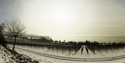 Keywords: winter snow lake constance panorama foggy perspective grapevine haze