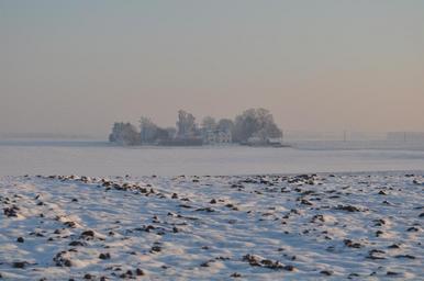 Keywords: winter snow landscape sunset winter landscape soil white house village picture mist