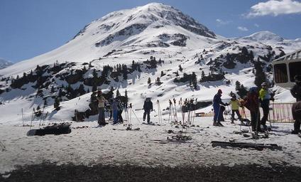 Keywords: winter snow skiers nature seasons of the year mountains view winter sports health the station queue sunny biel