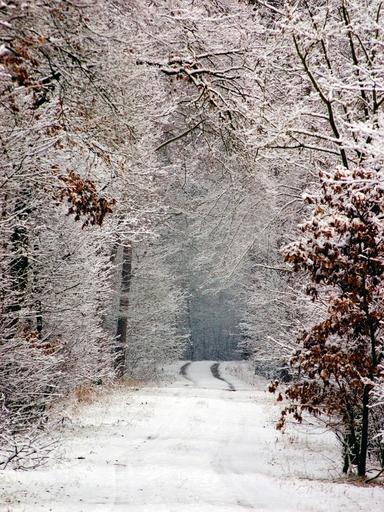 Keywords: winter snow snow lane tracks in the snow away wintry forest