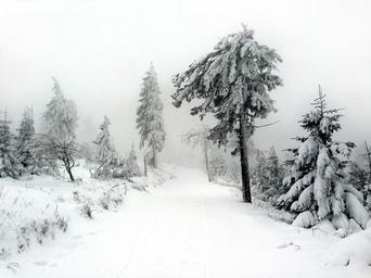 Keywords: winter snow tree bush nature wintry fog firs fir forest wanderer atmosphere mountain grey winter mood mystical coniferous forest away winter forest winter hike conifer road