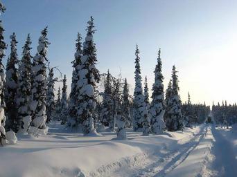 Keywords: winter snow winter forest nature landscape tree forest trees frost winter sun road glade