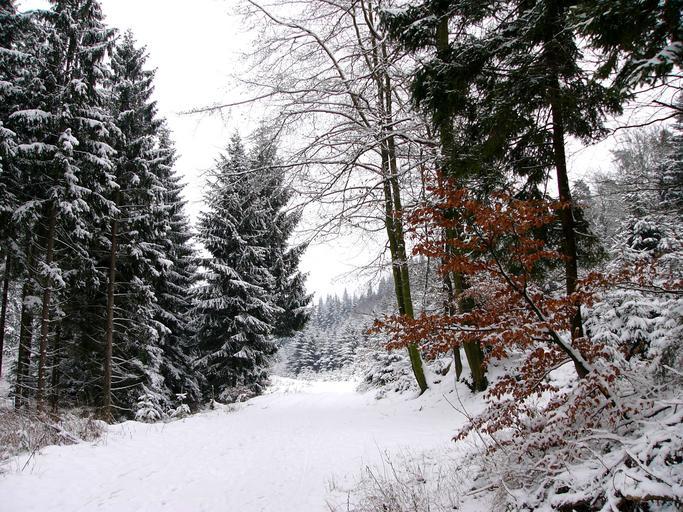 Keywords: winter snow wintry winter dream forest trees landscape winter forest cold germany sky clouds nature frozen snow cover foliage trail