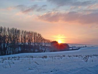 Keywords: winter sun snow nature frost trees sky blue cold evening sun mood village sunset