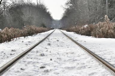 Keywords: path track railroad railway train transit transportation destination direction perspective ties rails distance winter