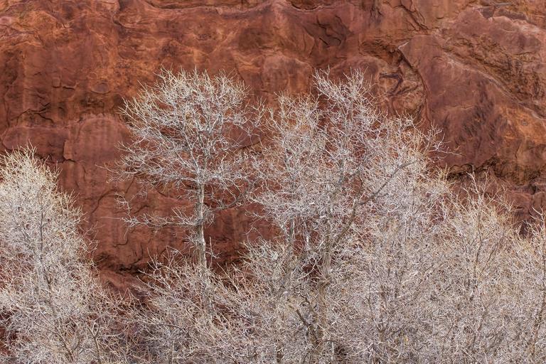 Keywords: winter trees red rock winter trees nature cliff bare trees bare
