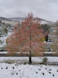 Keywords: winter winter blast maple tree red leaves snow autumn
