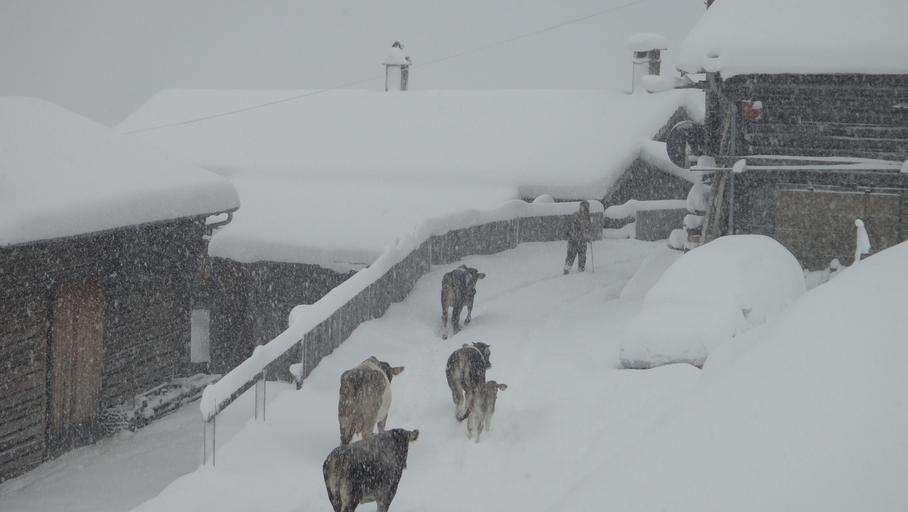 Keywords: winter winter blast safien valley switzerland cows almabtrieb tradition agriculture animals