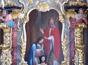 | Keywords: Wintershouse StGeorges 20.JPG Alsace Bas-Rhin Wintershouse Eglise Saint-Georges Autel secondaire St-Florent XVIIIe own 2012 Ralph Hammann cc-by-sa-3 0 Artwork / Œuvre d'art / Kunstwerk oil canvas cm 160 110 Eglise Saint-Georges Wintershouse Autel secondaire PM67000454 IM67002002 object history Ensemble de 2 autels secondaires et retables du milieu du 18e siècle qui proviendraient de l'abbaye de cisterciens Notre-Dame à Neubourg commune de Dauendorf ; restauré vers 1839 par le peintre strasbourgeois Michel Oster qui réalisa sans doute aussi les tableaux représentant l'Immaculée Conception et la guérison par saint Florent de la fille aveugle et muette du roi Dagobert Ier other versions Ralph Hammann PD-old accession number Photographs of Wintershouse by Ralph Hammann Taken with Canon PowerShot SX20 IS Autels secondaires Église Saint-Georges de Wintershouse Wooden reliefs in Bas-Rhin Reliefs of angels in Alsace 18th-century wooden reliefs in Alsace Objets monuments historiques in Bas-Rhin church paintings Neoclassical church paintings in Alsace 19th-century church paintings in Alsace Florentius von Straßburg |