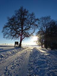 Keywords: wintry tree away evening abendstimmung traces snow landscape winter mood