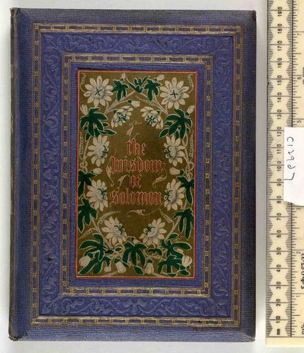 | Keywords: Wisdom of Solomon - Upper cover (c129d7).jpg Style Publishers binding; Caption Upper cover; Colour Blue; Edge Unspecified exhibition history Decorative Technique Blocked in gold Blocked in blind Blocked in colours; Cover Material Cloth binders Unspecified object history Text 1861; London; Unspecified object type Cc-zero place of creation Binding England place of discovery Unspecified British Library image http //www bl uk/catalogues/bookbindings/LargeImage aspx RecordId 020-000003114 ImageId ImageId 41162 Copyright BL Wisdom of Solomon Uploaded with GWToolset Wisdom of Solomon - Upper cover c129d7 http //www webarchive org uk/bldatasets/bindings/5660_4 jpg 19th-century bookbinding Bookbinding British Library Bookbindings |