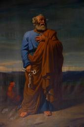 | Keywords: Wissembourg StPierre-Paul262.JPG fr Alsace Bas-Rhin Wissembourg Église abbatiale Saints-Pierre-et-Paul Peinture de Saint-Pierre 1843-1844 2015-07-15 16 24 15 own Ralph Hammann other versions Artwork / Œuvre d'art / Kunstwerk oil canvas 260 cm de large Abbatiale Saints-Pierre et Paul Wissembourg IM67012074 object history Deux tableaux représentant l'un saint Pierre et l'autre saint Paul furent demandés à la direction des Beaux-Arts du Ministère de l'intérieur pour la décoration de l'église en 1843 par l'intermédiaire du député du Bas-Rhin Max Théodore Cerfberr Ce souhait fut accueilli favorablement et les tableaux furent exécutés aux frais du gouvernement par le peintre Pierre André Victor Félix Cassel qui avait fait l'objet de recommandations particulières à l'occasion de la demande En novembre 1843 Cerfber demanda au curé Paulus des renseignements dimensions nécessaires à l'artiste pour l'exécution et lui joignit deux esquisses pour avis A D 67 2 G 544 /B103 esquisses non conservées ce qui situerait la mise en œuvre au plus tôt à la fin 1843 puis sans doute en 1844 other versions Ralph Hammann PD-old-100 accession number Nave of Sts Peter and Paul Church Wissembourg Church paintings in Bas-Rhin Photographs of Wissembourg by Ralph Hammann Neoclassical church paintings in Alsace 19th-century church paintings in Alsace Paintings of Saint Peter in France Uploaded with UploadWizard 1844 works in Alsace Taken with Panasonic Lumix DMC-FZ1000 |