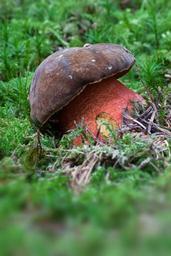 Keywords: witches placidus mushroom schusterpilz thunder sponge boletus erythropus hat arched dark brown stalk thick red yellow edible moss green