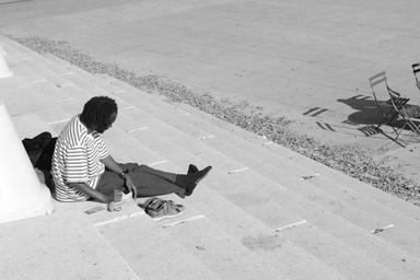 Keywords: without a home old man reading a book on the stairs the meetings of the outdoors