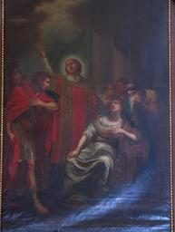 | Keywords: Wiwersheim StCyriaque 64.jpg Alsace Bas-Rhin Wiwersheim Eglise St Cyriaque Notre-Dame des Sept-Douleurs Tableau St Cyriaque diacre XVIIIe own 2012 Ralph Hammann cc-by-sa-3 0 Artwork / Œuvre d'art / Kunstwerk Artwork Creator Joseph Melling Saint Cyriaque en habits de diacre exorcisant la fille de l'empereur Dioclétien Arthémia 1787 oil canvas cm 350 200 Eglise Saint Cyriaque Wiwersheim IM67010024 PM67000475 object history Cette toile datée 1787 et signée Joseph Melling proviendrait du maître-autel de l'ancienne église paroissiale dédiée à ce saint et dont le culte fut transféré dans l'édifice actuel en 1888 other versions Ralph Hammann PD-old-100 accession number Interior of Église Saint-Cyriaque de Wiwersheim Photographs of Wiwersheim by Ralph Hammann Taken with Canon PowerShot SX20 IS Objets monuments historiques in Wiwersheim Baroque church paintings in Alsace 18th-century church paintings in Alsace Saint Cyriacus Objets monuments historiques in Bas-Rhin church paintings |