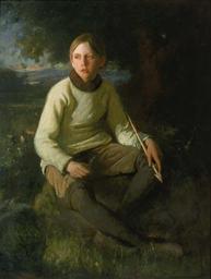 | Keywords: WLA amart The Boy with the Arrow by Douglas Volk.jpg reflection The Boy with the Arrow WLA amart 1909 7 68 Team_Gene pohick2 25581786 N05 3315307944 1903 creator Douglas Volk oil canvas cm 117 1 91 6 institution Smithsonian American Art Museum object history Gift of William T Evans exhibition history credit line SIRIS lists the model for this portrait as Volk's eldest son Leo http //siris-artinventories si edu/ipac20/ipac jsp session L426U8V045357 574 profile ariall source ~ siartinventories view subscriptionsummary uri full 3100001~ 250466~ 35 ri 1 aspect Keyword menu search ipp 20 spp 20 staffonly term Volk +Douglas index AW uindex aspect Keyword menu search ri 1 but Leo died in 1891 at age 9 http //www findagrave com/cgi-bin/fg cgi page gr GRid 52720137<br>Volk's second-eldest son Wendell was born in 1884 http //www metmuseum org/collection/the-collection-online/search/20510 which would have made him age 18 or 19 in 1903 when this was painted <br>Volk's youngest son Gerome likely was the model He was born in 1890 and would have been age 12 or 13 when this was painted accession number 1909 7 68 PD-old-auto-1923 1935 cc-by-sa-2 5 Kaldari 2009-09 possiblyPD Douglas Volk 1903 portrait paintings Portraits of artist's children Volk |