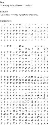 Keywords: Wmfont century schoolbook l italic.svg en Sample rendering of font Century Schoolbook L Italic Own Mktyscn 2009-09-10 Valid SVG Typeface samples Century Schoolbook
