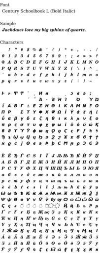 Keywords: Wmfont century schoolbook l bolditalic.svg en Sample rendering of font Century Schoolbook L Bold Italic Own Mktyscn 2009-09-10 Valid SVG Typeface samples Century Schoolbook