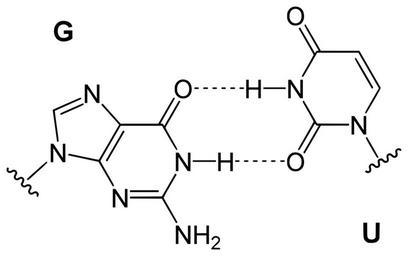 Keywords: Wobble base pair GU.svg en Wobble base pair guanine uracil GU de Wobble Basenpaar Guanin Uracil GU Own Yikrazuul 5 11 08 DNA chemical structures Base pairing