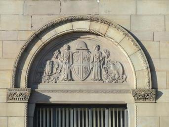 | Keywords: Woburn Five Cents Savings Bank detail - Woburn, MA - DSC02788.JPG Woburn Five Cents Savings Bank building beside the common in Woburn Massachusetts USA Built 1931; architect and artist s unknown Above the windows are symbolic carvings representing Capital supported by Prosperity and Wealth; Mechanics Art and Agriculture and Industry supported by figures representing Banking and Recording; and the Beehive of Industry Daderot 2012-01-01 14 49 34 Daderot cc0 cc0 Woburn Five Cents Savings Bank |