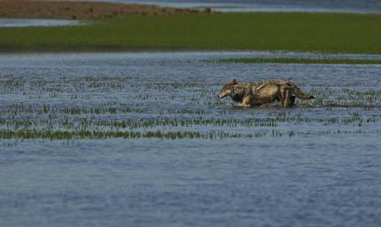 Keywords: outdoor Wolf crossing Alum Creek in Hayden Valley; Jim Peaco; July 2010; Catalog #18815d; Original #RD7Y2342 Wolf crossing Alum Creek in Hayden Valley; Jim Peaco; July 2010; Catalog #18815d; Original #RD7Y2342