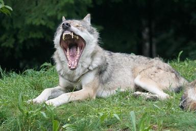 Keywords: wolf predator european wolf dormant yawn lying carnivores wildlife photography canis lupus