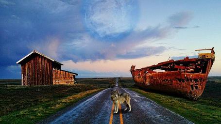 Keywords: wolf ship hut cloudiness road nature planet asphalt