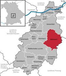 | Keywords: Wolnzach in PAF.svg DeLocMaps Wolnzach Landkreis Pfaffenhofen an der Ilm District of Pfaffenhofen/Ilm Pfaffenhofen district L'arrondissement de Pfaffenhofen an der Ilm Arrondissement de Pfaffenhofen an der Ilm Bayern Bavière Bavaria Adobe Illustrator <br/> own based on <br/> File Municipalities_in_Bavaria svg by TUBS 2010-05-07 Hagar66 based on work of TUBS Hagar66/licensesection Attribution TUBS/Credits Locator maps of municipalities in Landkreis Pfaffenhofen an der Ilm Wolnzach | ||||