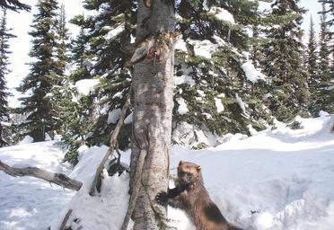 Keywords: Wolverine clawing tree trees winter snow animal forest unitedstates wildlife wolverine foraging usforestservice naturalresources