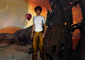 Keywords: woman apocalypse desert ship wreck balloon sporty female taff glasses pretty body girl sky face light mood fantasy future