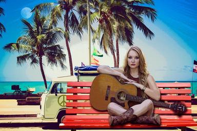 Keywords: woman beach sea guitar music irene blonde colors palm trees wallpaper imagination sky blue