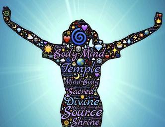 Keywords: woman body-mind mind-body temple divine source shrine girl alive aware awake spirit spiritual mystical mystery love emoji nature symbols self-discovery self-realization enlightenment wholeness wellness bright background