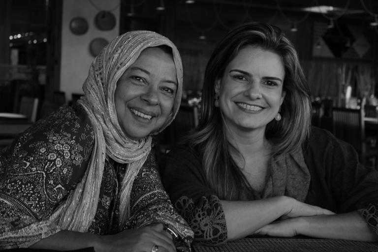 Keywords: woman charm friends clothes female long hair black and white sensual
