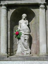 Keywords: woman female flower kelburn statue stonework stone sculpture artwork ancient historical artistic creative creativity design structure