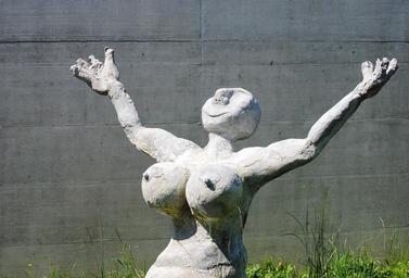 Keywords: woman fig sculpture caricatured cement grey breasts naked bosom concrete wall fair faced concrete